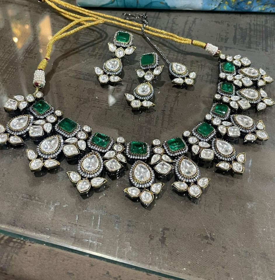 ชุดสร้อยคอคุนดันประดับเพชรซิร์คอนชุบเงินอย่างสวยงามสง่างามสำหรับเจ้าสาว พร้อมติกก้าสำหรับงานแต่งงาน