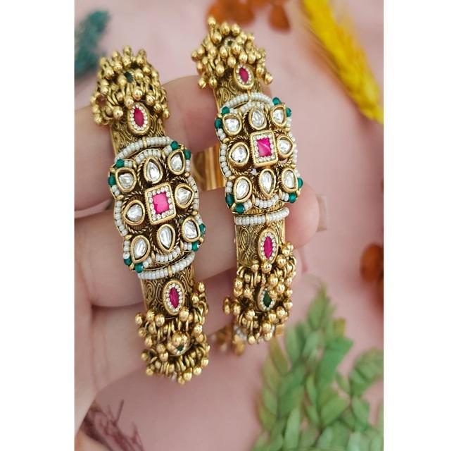 ชุดกำไลข้อมือสองชิ้นเคลือบทองคุณภาพพรีเมียมประดับโมอิสซาไนต์ดีไซน์โบราณเคลือบด้าน สวยหรู ทันสมัย เหมาะสำหรับงานแต่งงาน