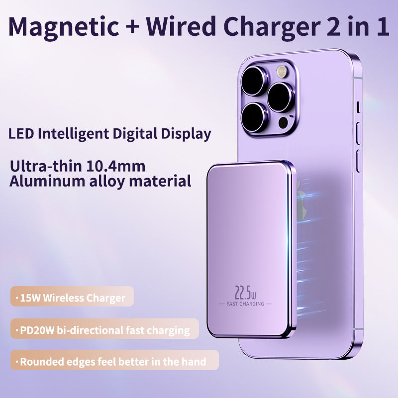 Fast Charging, Wireless Charger, แบบพกพา, จอแสดงผล LED, 2 In 1 Power Bank