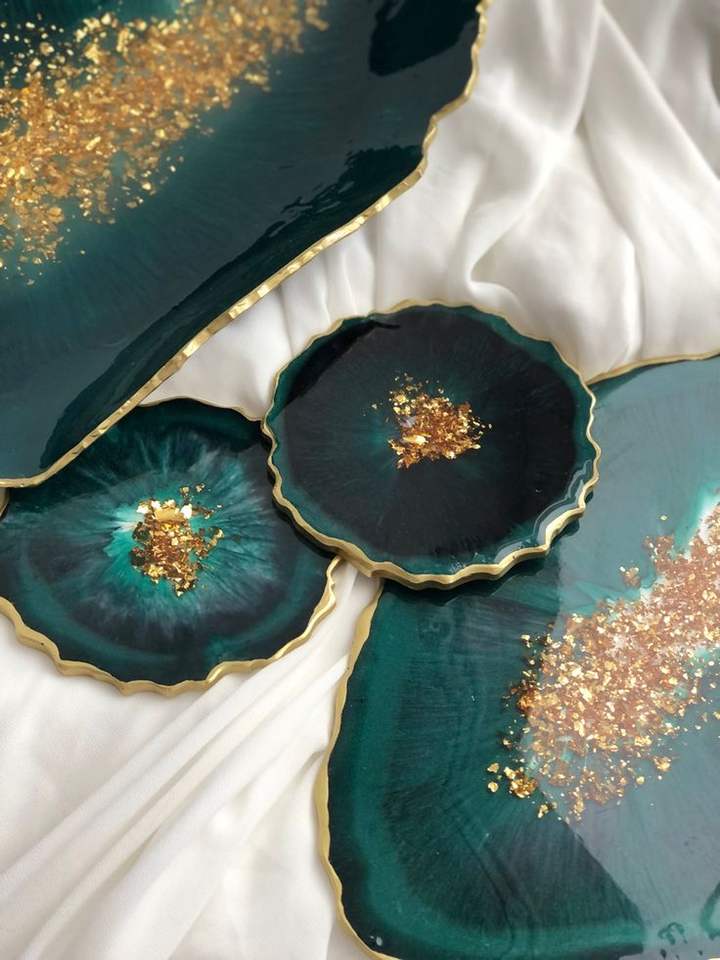 ถาดเสิร์ฟอีพ็อกซี่เรซินทำมือสไตล์ทำด้วยมือของใช้จำเป็นสำหรับห้องครัวในบ้านร้านอาหารโรงแรมตกแต่งให้บริการ