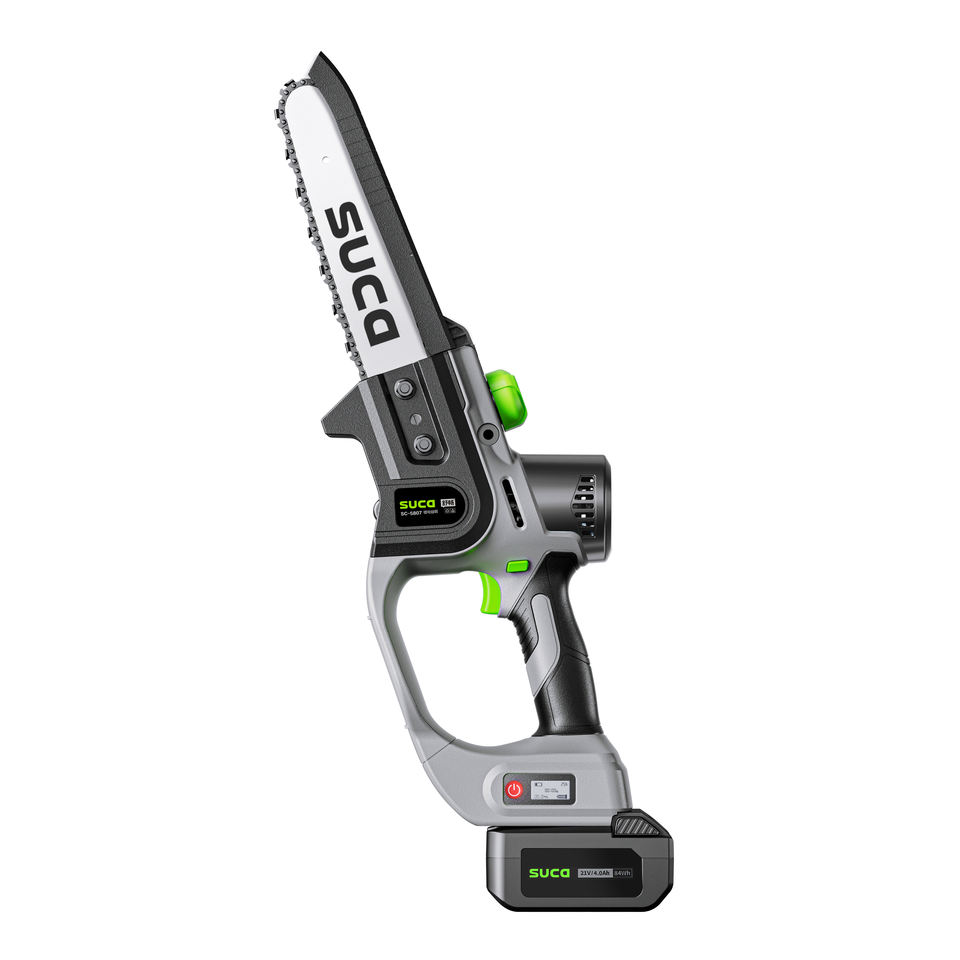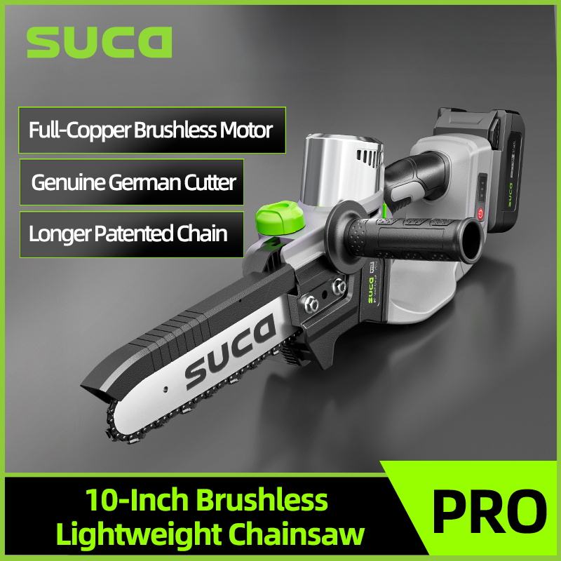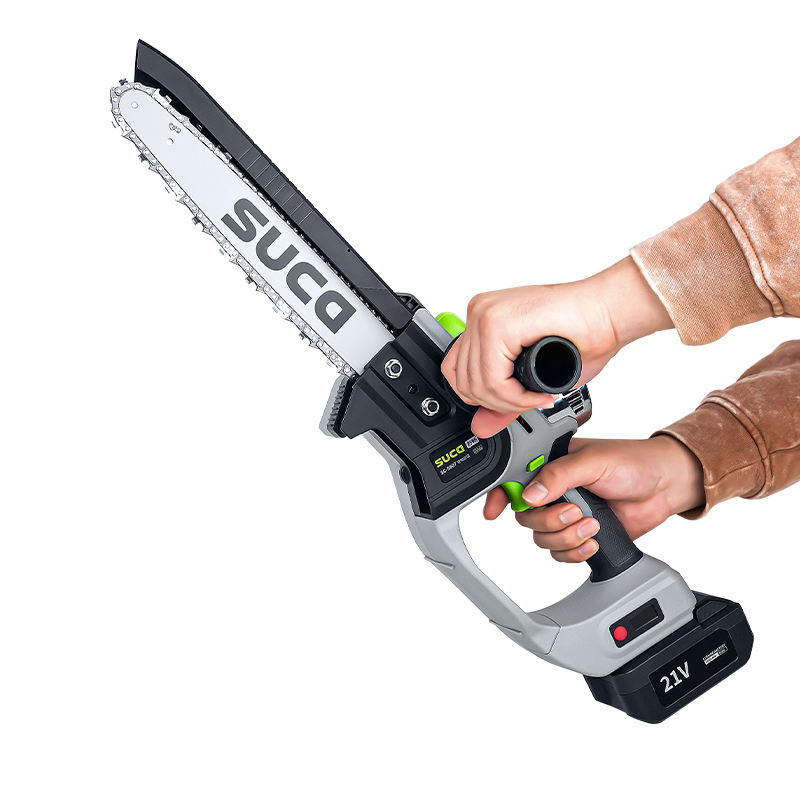 เลื่อยโซ่ยนต์ไร้สาย SUCA SC-5807 สำหรับงานอุตสาหกรรม OEM ขนาด 10 นิ้ว 800 วัตต์ 21 โวลต์/4 แอมป์ชั่วโมง มอเตอร์ไร้แปรงถ่าน เลื่อยไฟฟ้าสำหรับตัดต้นไม้