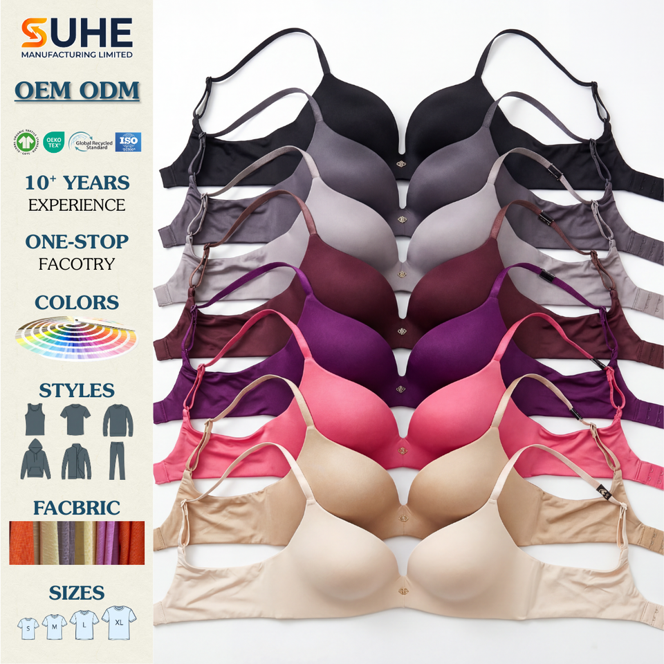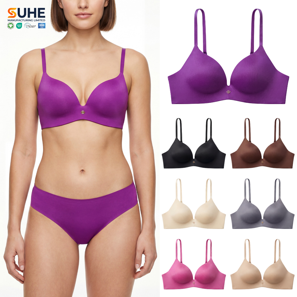 SUHE เสื้อชั้นในไร้สายสำหรับผู้หญิง แบบไร้ตะเข็บ ยกกระชับ สายปรับได้ ปิดด้านหลัง คัพ 3/4 ไนลอน สวมใส่สบายทุกวัน มี 7 สี
