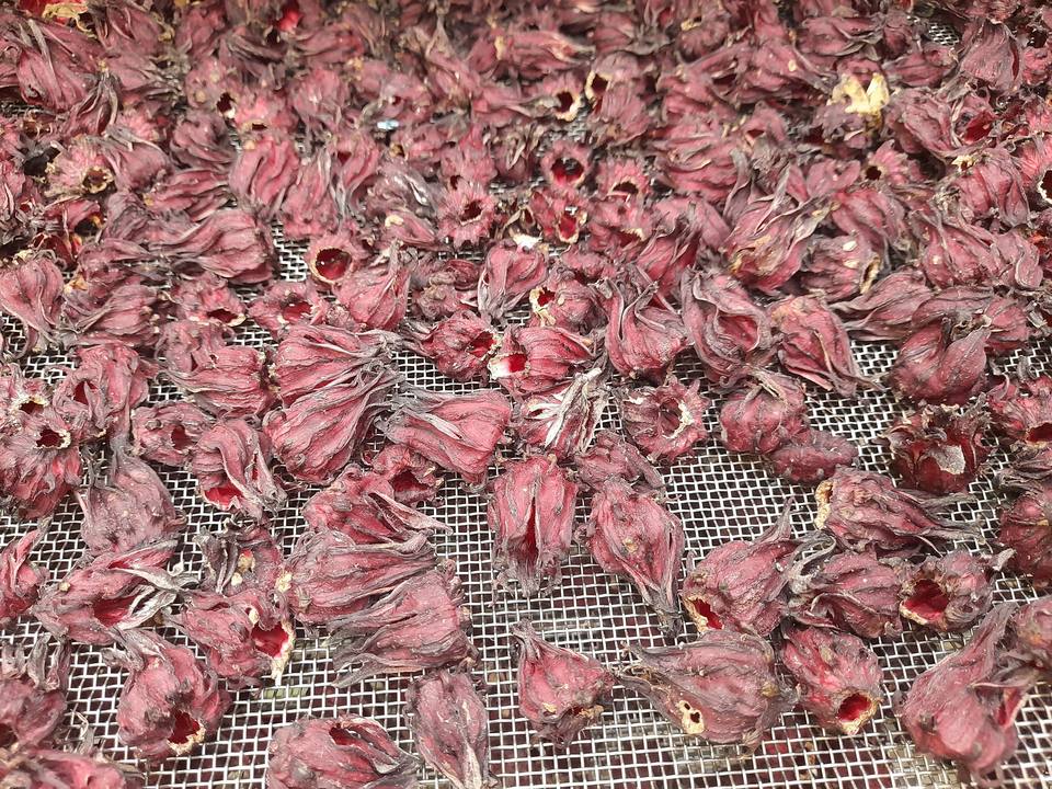 กลีบเลี้ยงจากชบาแดงมีส่วนผสมของชาสมุนไพรธรรมชาติ