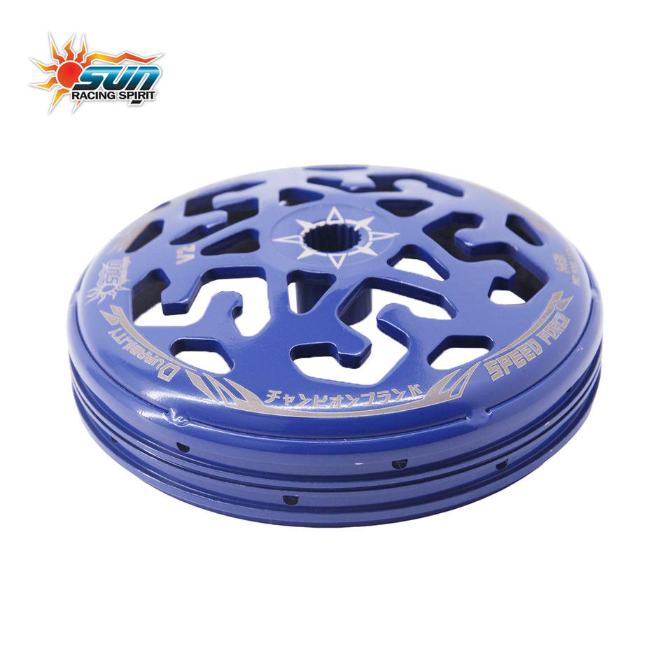 ฝาครอบกระดิ่งคลัตช์ SUN Racing สีน้ำเงินใหม่ สำหรับ MIO M3/MIO SOUL I125 สกู๊ตเตอร์ไต้หวัน เคลือบผิวทนทาน ร่องลึกพิเศษ เพิ่มประสิทธิภาพ