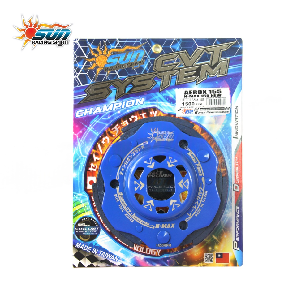 ชุดคลัตช์เหล็ก SUN Racing สำหรับไต้หวัน NMAX155/AEROX155 สกู๊ตเตอร์ BLUE รุ่นใหม่ ทนทาน เรียบลื่น ประสิทธิภาพสูง 1500 รอบต่อนาที
