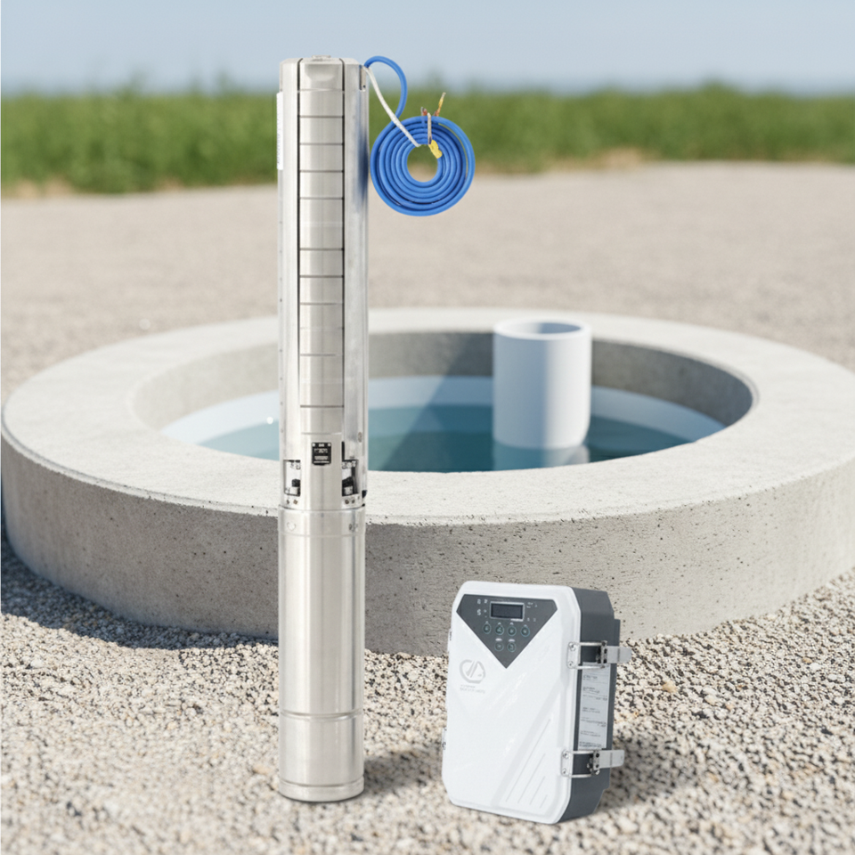 ปั๊มน้ำพลังงานแสงอาทิตย์แบบจุ่มใต้น้ำ SUNDANKA 4/6 นิ้ว พร้อมมอเตอร์ไร้แปรงถ่านและใบพัดสแตนเลส ปั๊มประสิทธิภาพสูงสำหรับบ่อน้ำลึกและการชลประทาน