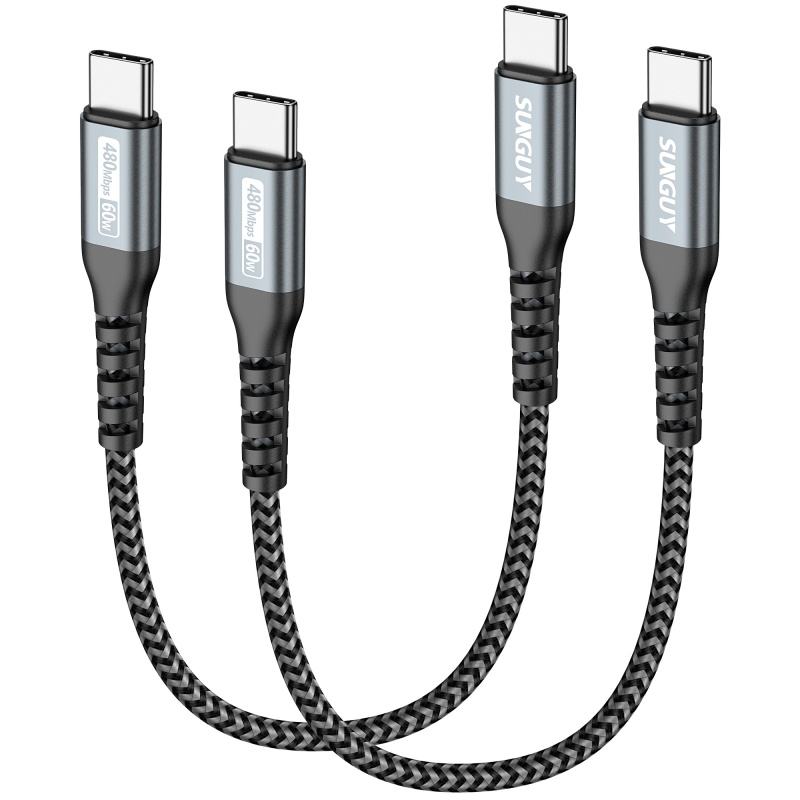 SUNGUY ไนลอน 60w สายยูเอสบี ซีสายไฟประเภทซีสายชาร์จข้อมูลแบบเร็วสำหรับโทรศัพท์มือถือแล็ปท็อปและใช้ในรถยนต์