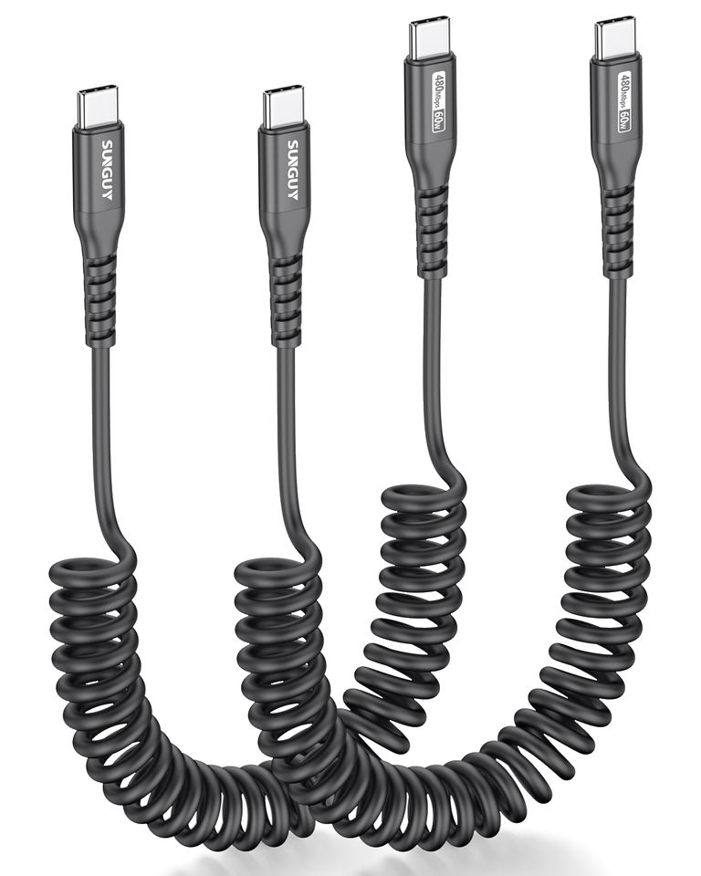 SUNGUY USB C 60W 3A สายชาร์จเร็วแบบพับเก็บได้ ทำจากอะลูมิเนียม สำหรับโทรศัพท์ แล็ปท็อป พาวเวอร์แบงค์ และในรถยนต์