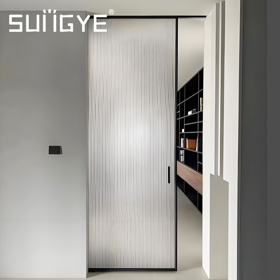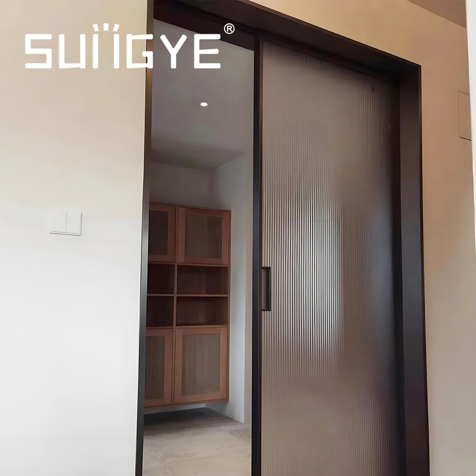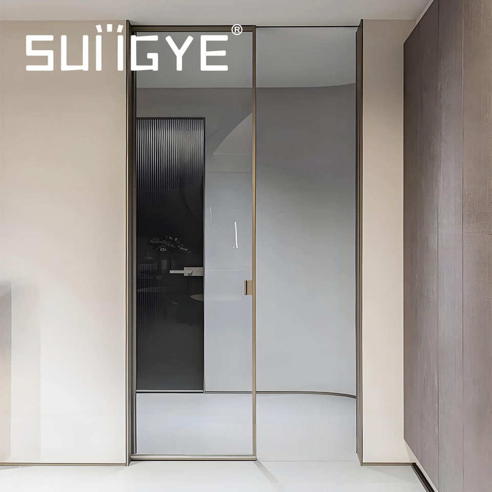 ประตูบานเลื่อนซ่อนในผนังแบบกรอบอลูมิเนียมบางเฉียบ SUNGYE พร้อมกระจกฝ้าแบบกำหนดเองสำหรับกั้นห้องภายในบ้าน