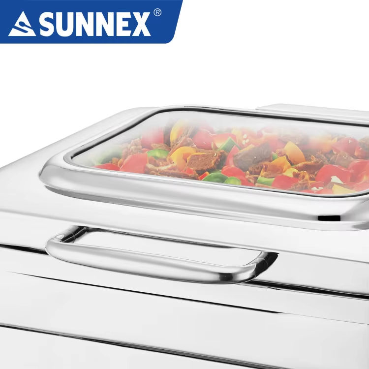 Sunnex อุปกรณ์สำหรับอุ่นอาหารสแตนเลสสตีล, ชุดบุฟเฟต์อาหาร5.5L ไฮดรอลิกสำหรับโรงแรม
