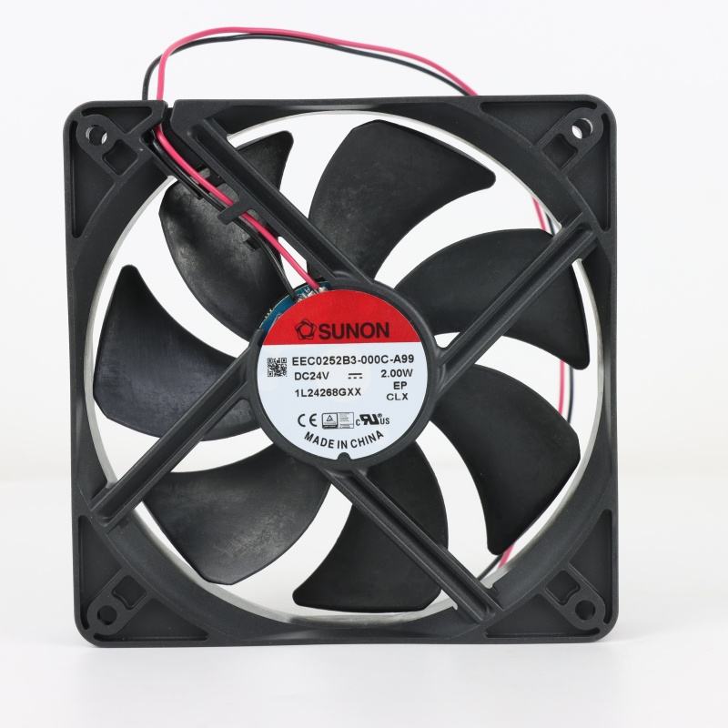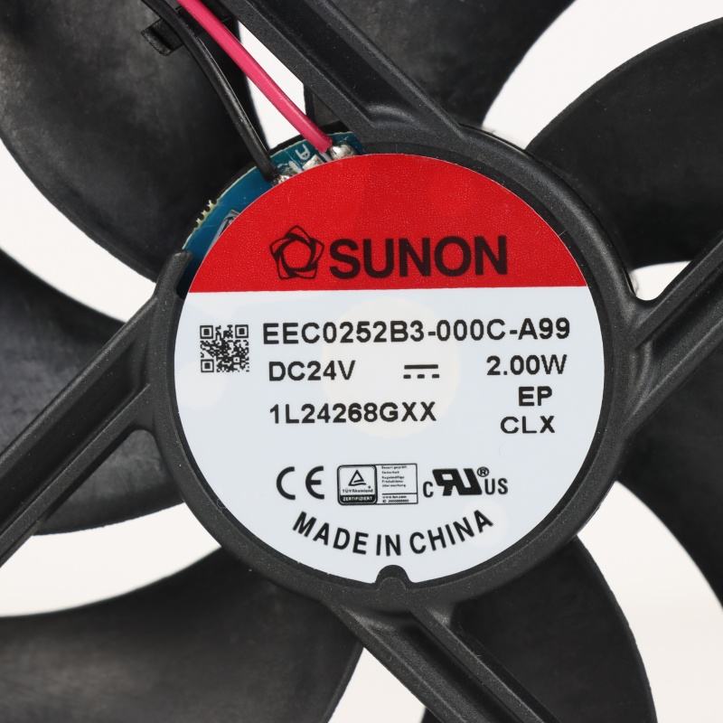 พัดลมระบายความร้อนแบบแกน SUNON EEC0252B3-000C-A99 สำหรับอินเวอร์เตอร์ในตู้ ขนาด 120x120x25 มม. 24VDC 84mA 2.0W 2200RPM 75CFM แบบลูกปืน