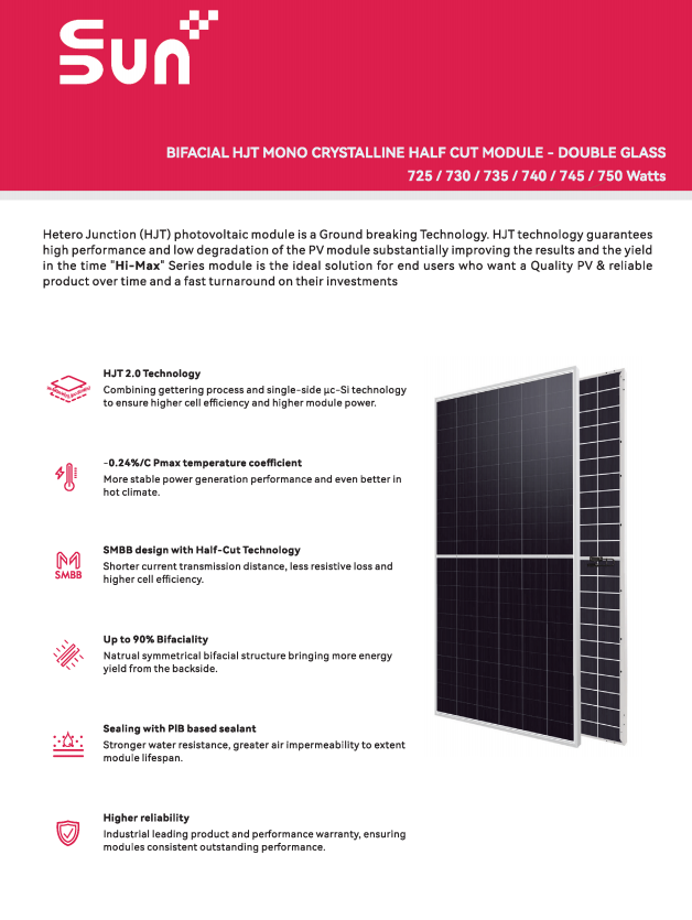 SUNPLUS A-Class Monocrystalline Paneles Solares Manufacturer Price HJT2.0 mono crystalline half cut module-double glass 720-750w