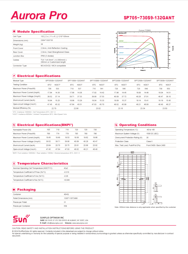 แผงเซลล์แสงอาทิตย์แบบสองหน้า hjt 725W Sunplus ใหม่ Sunplus