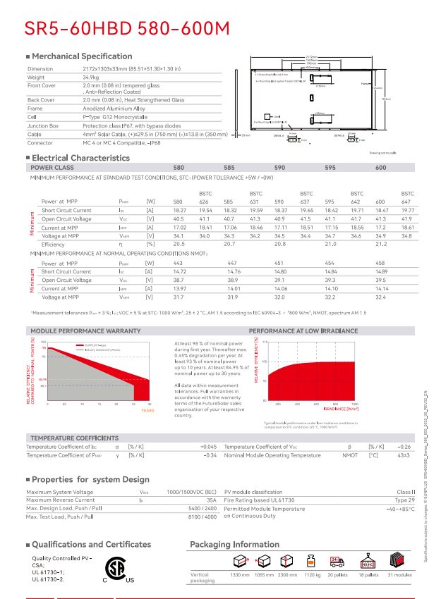 หมายเลขรุ่น:580/585/590/595/600watts