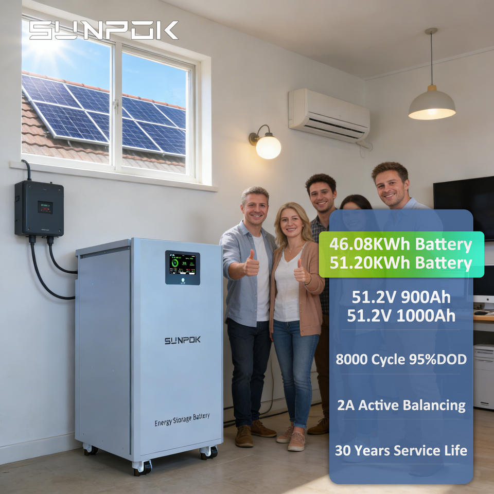 Sunpok LiFePO4แพ็ค51.2V 900Ah แบตเตอรี่50kWh 1000ah ลิเธียมเคลื่อนย้ายได้ในแนวตั้งระบบจัดเก็บของในบ้านพลังงานแสงอาทิตย์