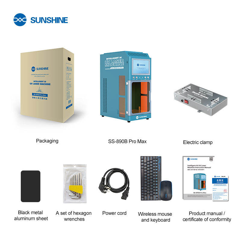 Sunshine SS-890B PRO MAX เครื่องทำเครื่องหมายเลเซอร์ UV อัจฉริยะสำหรับ iPhone เครื่องเลเซอร์กระจกหลังเครื่องแยกกรอบหน้าจอ LCD