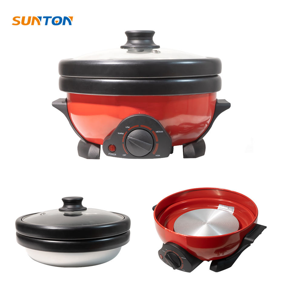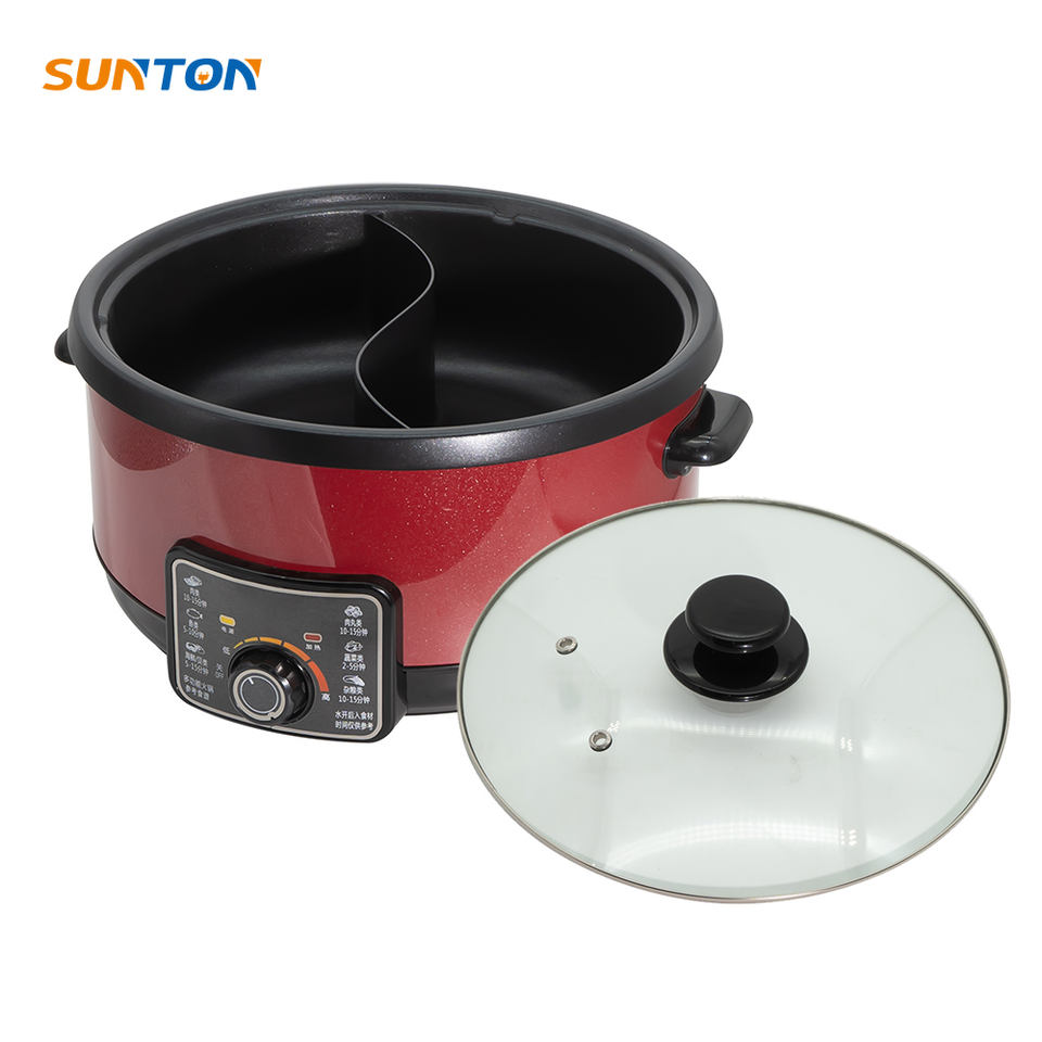 โรงงานซันตันขายส่งหม้อไฟฟ้าอเนกประสงค์ 2 in 1 แบบแบ่งช่อง สำหรับทำชาบู ไม่ติดกระทะ สองรสชาติ