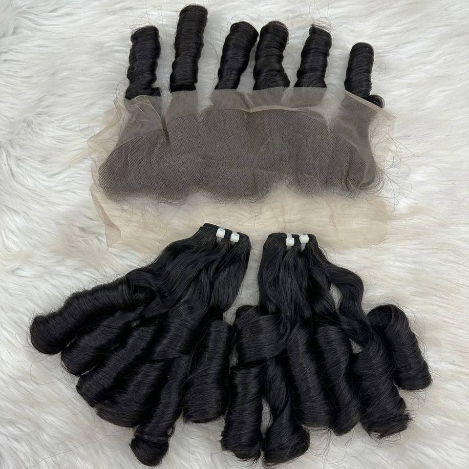วิกผมต่อผมมนุษย์บริสุทธิ์แบบลอนผมสีดำธรรมชาติแบบเด้งดึ๋ง