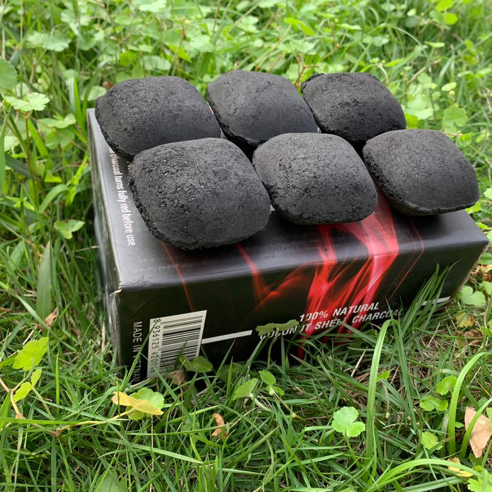 ถ่านกะลามะพร้าวอัดแท่งคุณภาพสูง ผลิตด้วยเครื่องจักร สีเงินดำ ยี่ห้อ GREENFIRE VIETNAM ระยะเวลาการเผาไหม้ 3-4 ชั่วโมง ความเข้มข้น 67%