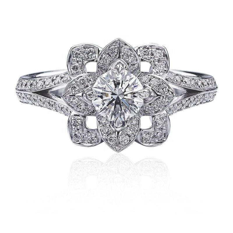 แหวนทองเพชรแท้ธรรมชาติคุณภาพดีเยี่ยมดีไซน์เนอร์งานหมั้นงานแต่งงานปรับขนาดได้ตามต้องการ