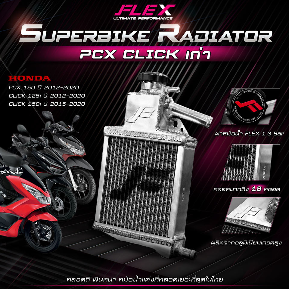 ซูเปอร์ไบค์หม้อน้ำอลูมิเนียมยืดหยุ่นสำหรับฮอนด้าคลิก150i ปี2015-2020รับประกัน1ปีผลิตภัณฑ์ป้องกันการรั่วจากประเทศไทย