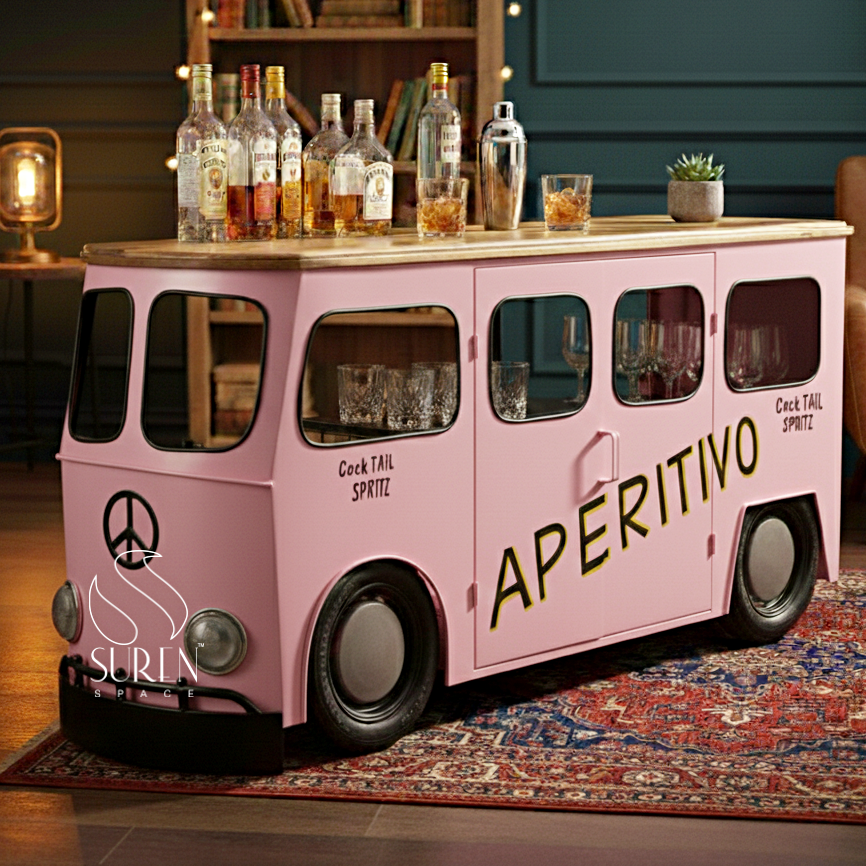 ตู้บาร์สไตล์โมเดิร์นอินดัสเทรียล SUREN SPACE เฟอร์นิเจอร์เหล็กที่เป็นมิตรกับสิ่งแวดล้อม ดีไซน์โดดเด่น 3 ช่อง ประตูแบบเรียบ ท็อปไม้