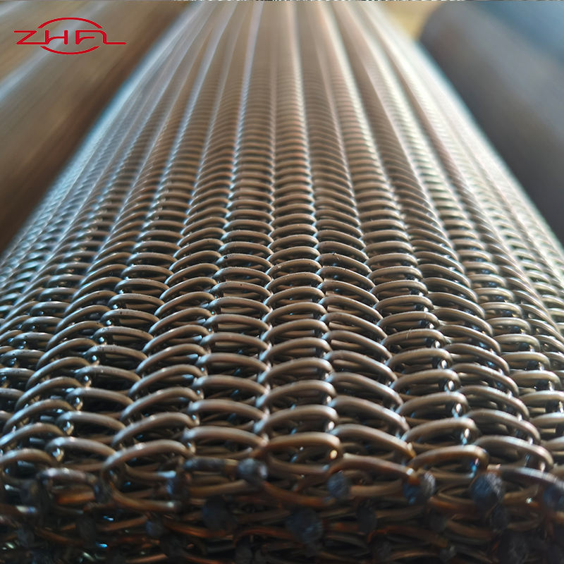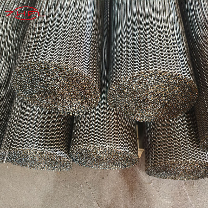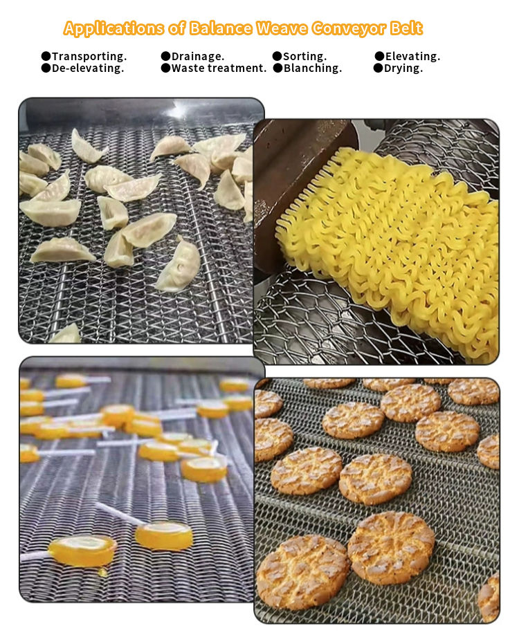 รูปร่าง:สายพานลำเลียงแบบตาข่ายลูกโซ่, ลายข้าวหลามตัด, แบบผ้ากันเปื้อน, สายพานตาข่ายทรงกลม