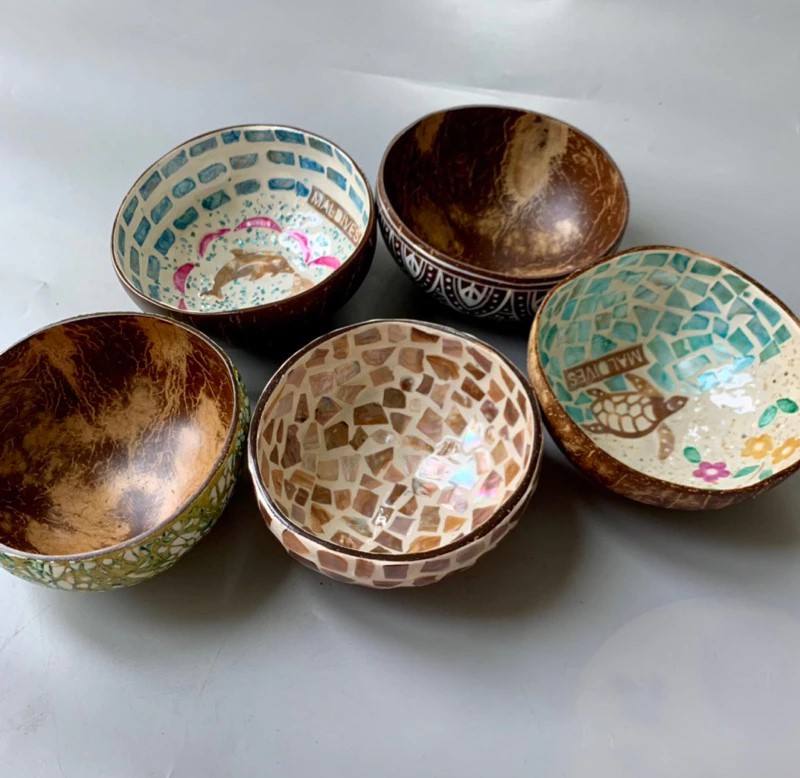 SUSTAINABLE HAND POLISHED COCONUT SHELL BOWL NATURAL DINING AND HOME DECOR USE