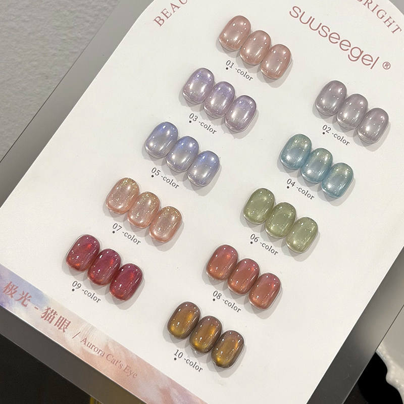 ชุดยาทาเล็บเจล SUUSEEGEL 10 สี มูนไลท์ แคทอาย คุณภาพสูง ปลอดสารพิษ ยูวีเจล ODM/OEM ขายส่ง