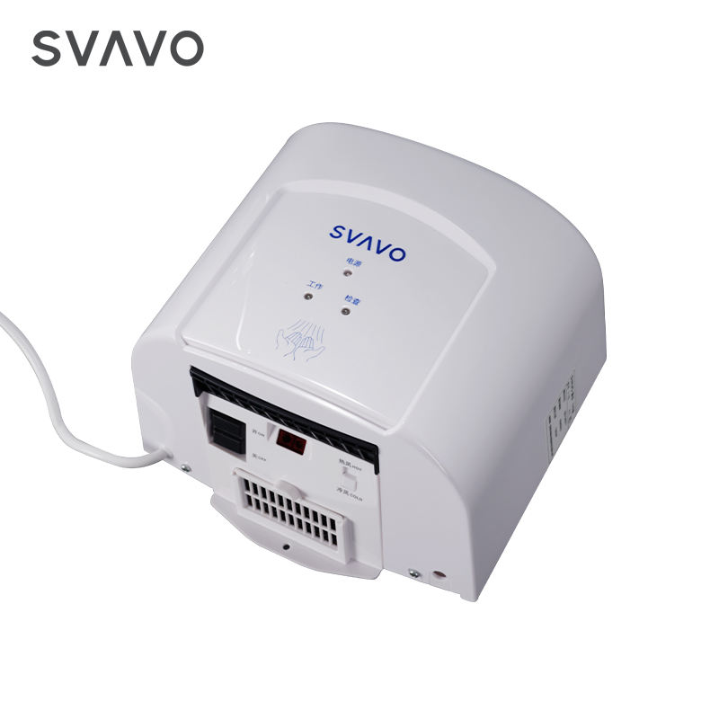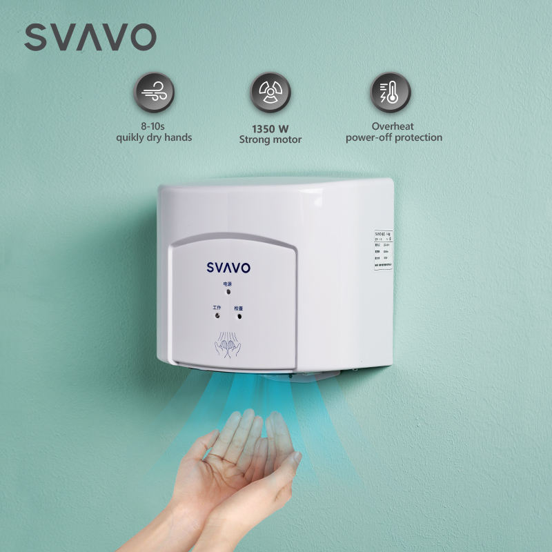 SVAVO พลาสติก ABS สีขาวโครเมี่ยมติดผนังสัมผัสฟรีความเร็วสูงเครื่องเป่ามือสำหรับโรงแรม