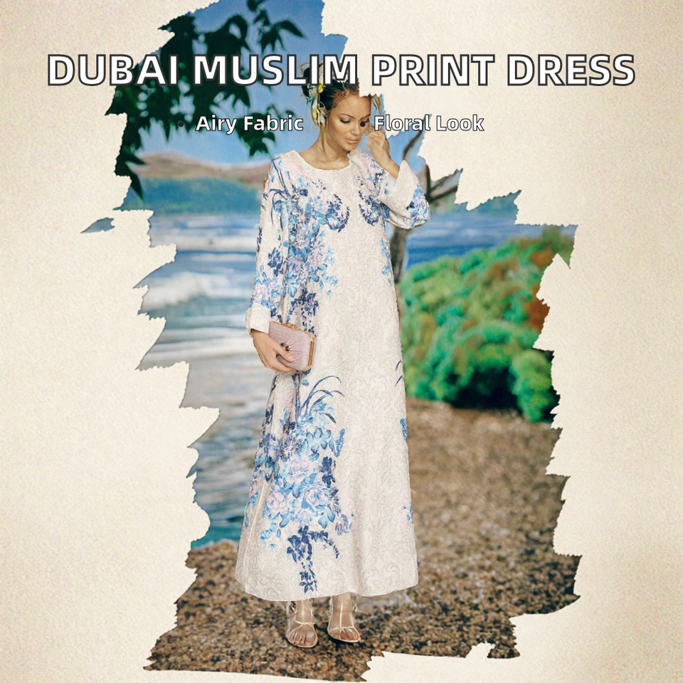 SW2501 อาลีเอ็กซ์เพรส ตะวันออกกลาง ชุดอาบายะห์สำหรับผู้หญิงมุสลิม แฟชั่นการค้าต่างประเทศจากดูไบ กระโปรงยาวพิมพ์ลาย ชุดเดรสฤดูหนาว
