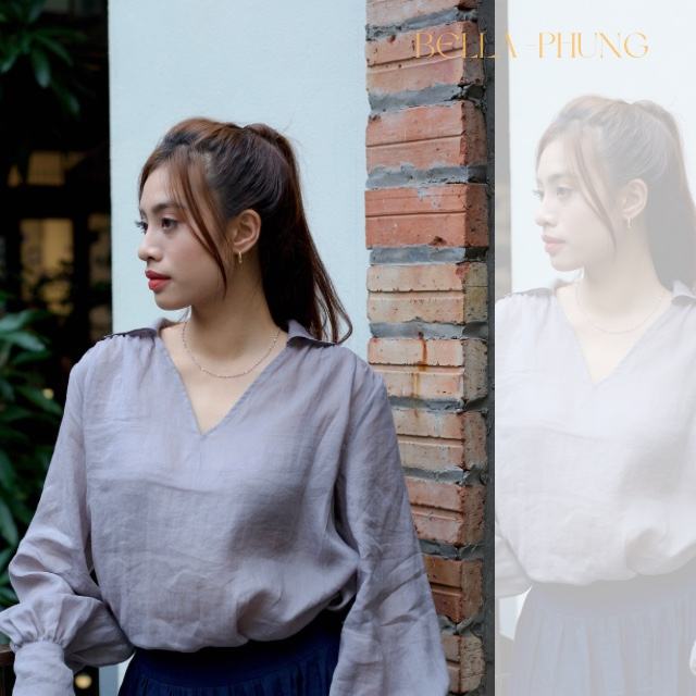 Sway เสื้อเบลาส์ผ้าลินินมีสไตล์ (0624PBT00011) ยาวผ้าทอผ้าป่านสวมใส่สบายดีไซน์พิมพ์ลายสำหรับผู้หญิงออฟฟิศ