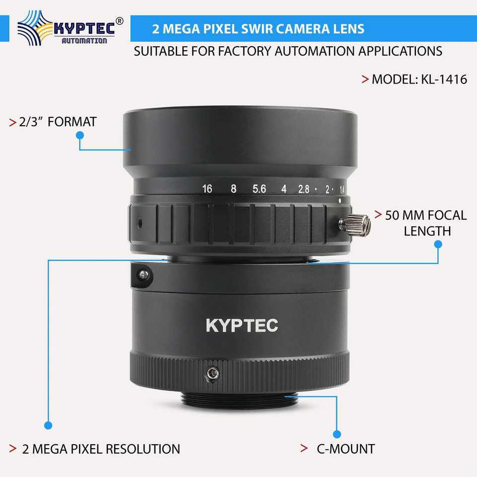 เลนส์กล้อง SWIR 50 มม. 2MP รูปแบบ 2x3 สำหรับระบบภาพอินฟราเรด ระบบวิชันซิสเต็ม และการใช้งานในอุตสาหกรรม