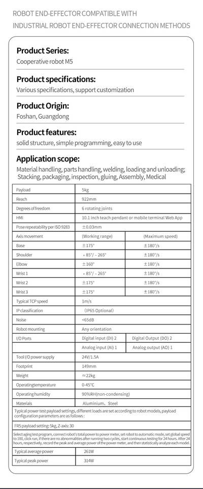 Safety Features:Collision Detection, Emergency Stop Button, Safe Torque Limitation
