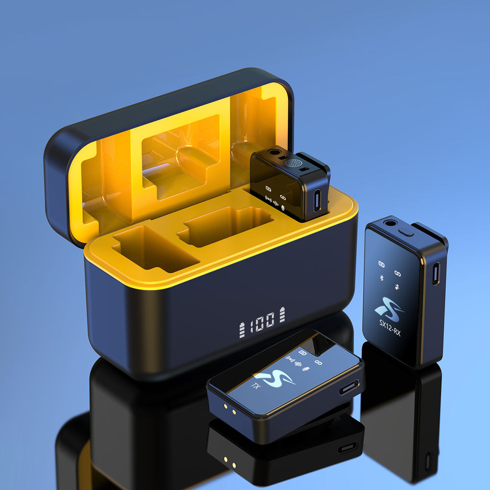 ไมโครโฟนไร้สายแบบหนีบปกเสื้อ SX12 ไมโครโฟน 3 in 1 สำหรับการถ่ายทอดสดวิดีโอและการบันทึกเสียง