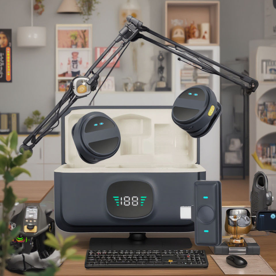 ไมโครโฟนไร้สาย SX21 Pro 5 in 1 สำหรับ iPhone ระยะ 50 เมตร ตัดเสียงรบกวน แบตเตอรี่ใช้งานได้ 12 ชั่วโมง สำหรับกล้องถ่ายภาพ