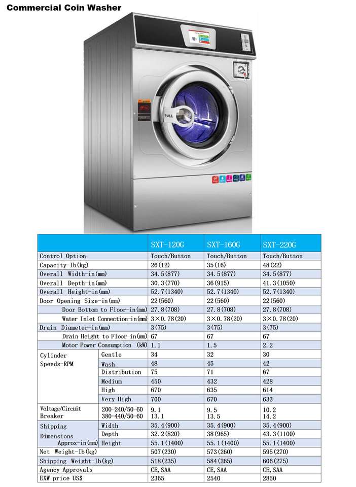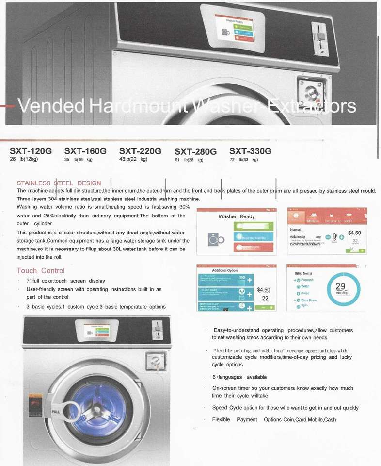 Commercial Coin Washerชนิดของเครื่อง