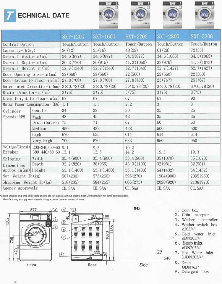 เครื่องซักผ้าอุตสาหกรรม SXT-220G ความจุ 22 กก. ราคาแข่งขัน อุปกรณ์ซักรีดอุตสาหกรรมสำหรับเสื้อผ้า