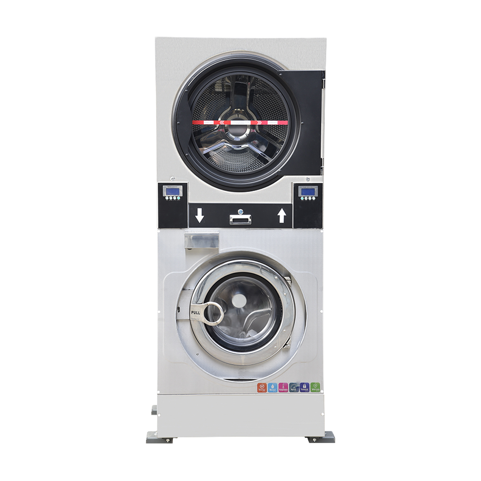 เครื่องซักผ้าอบผ้าอัตโนมัติแบบซ้อนสอง SXTH-160 (16 กก.) สำหรับใช้งานเชิงพาณิชย์ พร้อมหน้าจอ LCD ระบบอินเวอร์เตอร์ 380V/220V แบบติดตั้งแข็ง