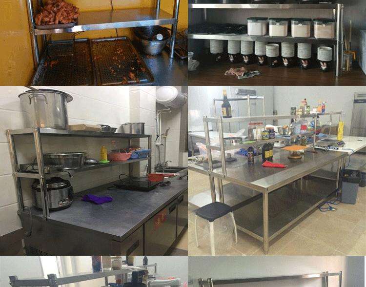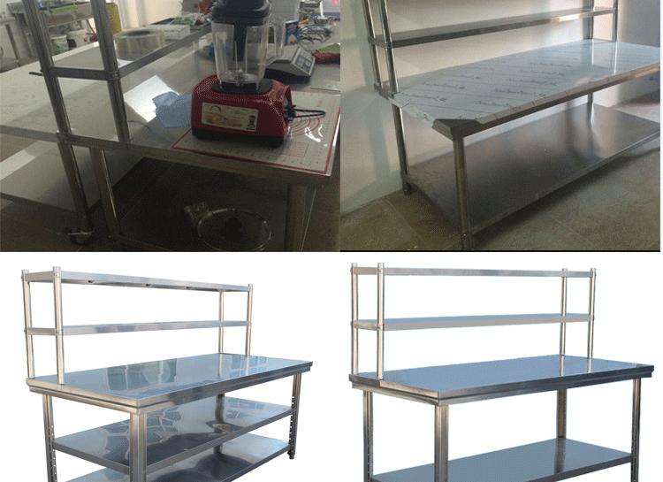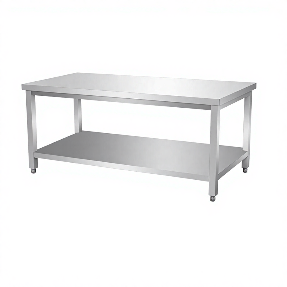 โต๊ะทำงานครัวเชิงพาณิชย์ SY ทนการกัดกร่อน แบบสองชั้น สแตนเลสขัดเงา รับน้ำหนัก 800 กก./ตร.ม.