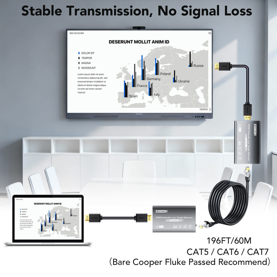080P 60M/196Ft HD HDMI Extender Over EthernetModel