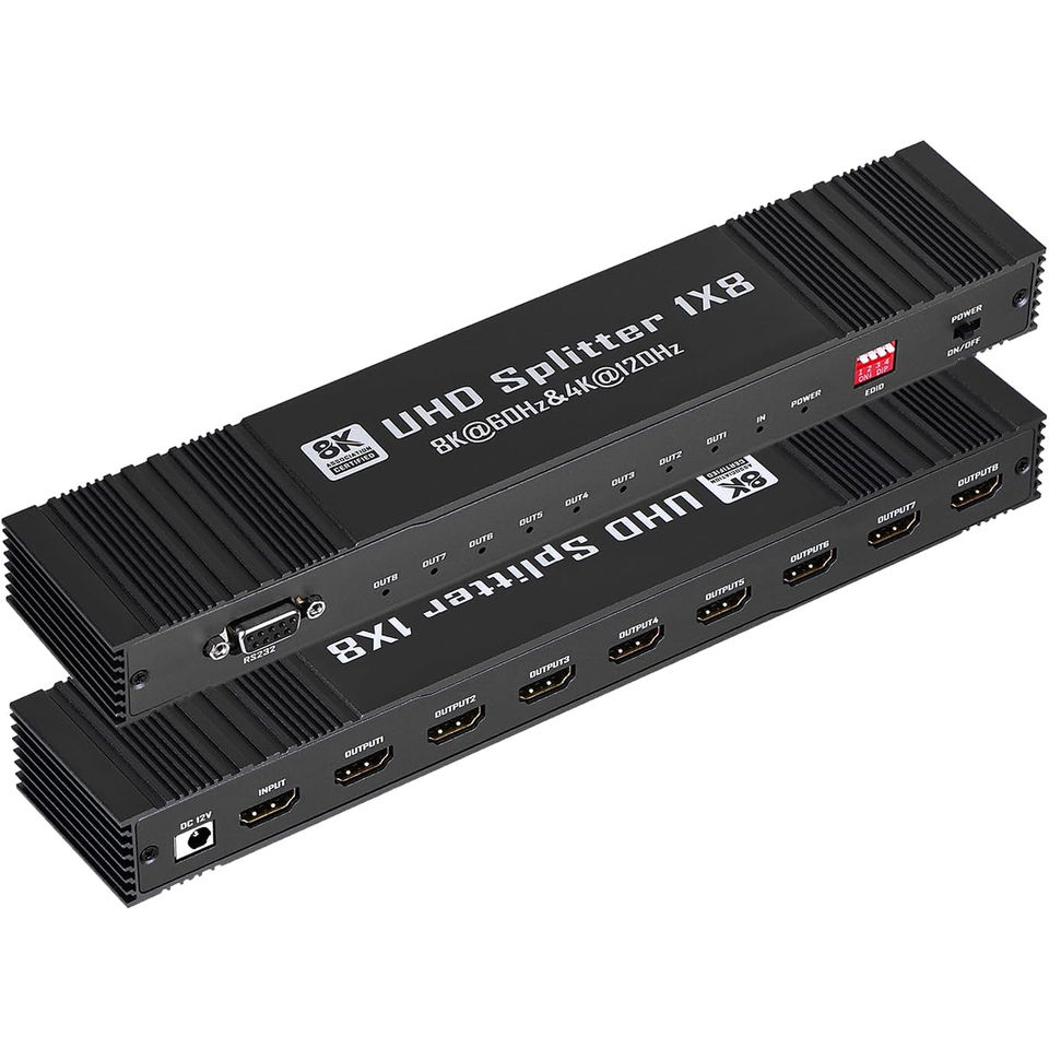 Syong ตัวแยก HDMI แบบ1อิน8เอาต์พุต4K120Hz 8K60Hz RS232การตั้งค่า EDID HDMI2.1 HDR10 HDCP2.3 + ตัวแยก HDMI 1x8สำหรับ DTS-HD/7.1CH