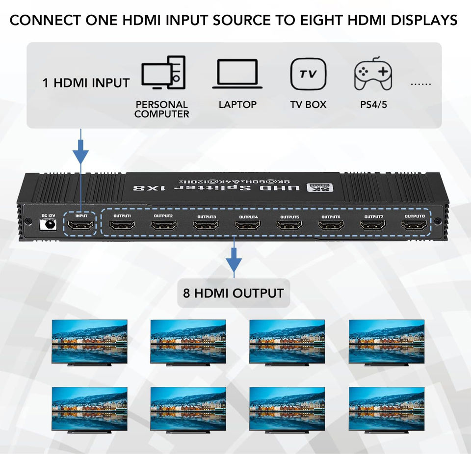 ตัวแยกสัญญาณ HDMI 8K แบบ 1 เข้า 8 ออก พร้อม EDID