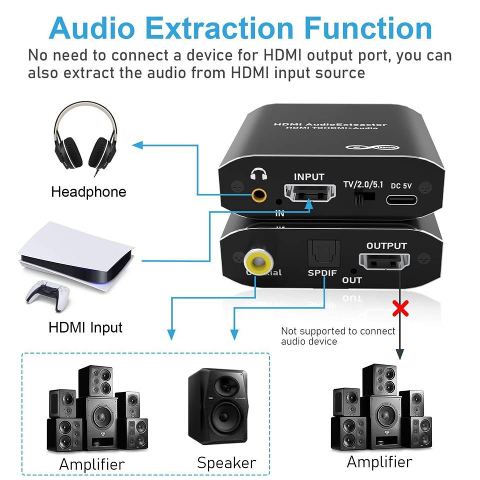 ฟังก์ชัน:ตัวแยกสัญญาณเสียง HDMI เป็น HDMI 4K, ความละเอียดวิดีโอสูง 4K