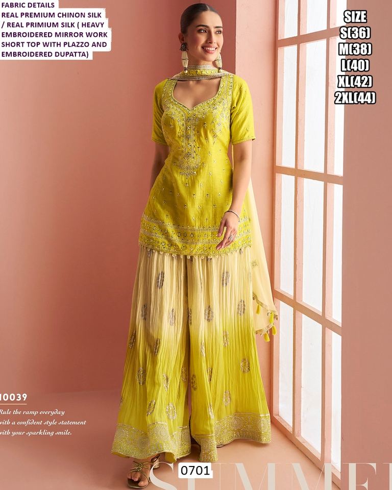 ชุดเดรสปักลายกระจกวาววับแบบดั้งเดิมของซานวี ทรงพาลาซโซ่ยาวถึงพื้น