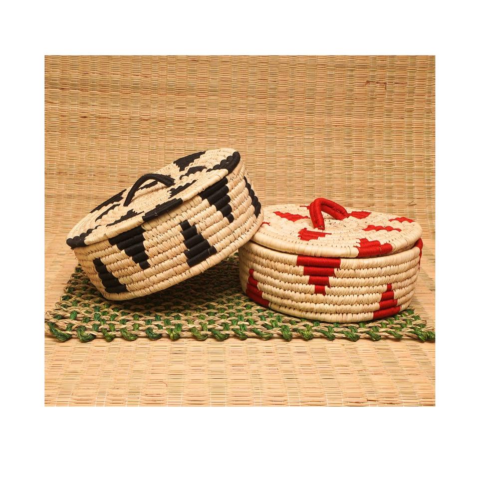ตะกร้าหญ้า sabai ตกแต่งสำหรับการจัดเก็บแบบชนบทพร้อมงานฝีมือช่างฝีมือช่างฝีมือที่ยั่งยืนเป็นมิตรต่อสิ่งแวดล้อมทนทาน