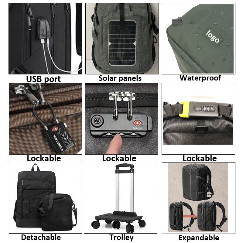 คุณสมบัติ:ทนทาน, Large capacity, รีไซเคิลได้เป็นมิตรกับสิ่งแวดล้อม, กระเป๋าหลายช่อง, สบาย, ระบายอากาศ