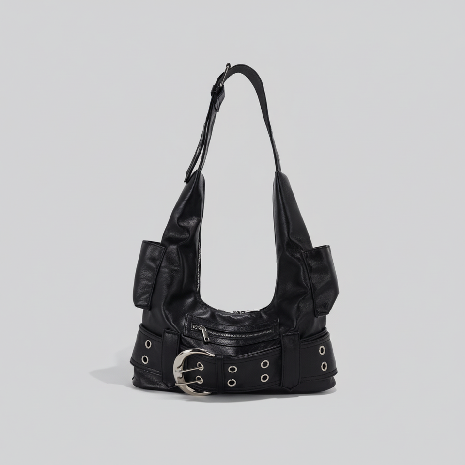 กระเป๋าสะพายไหล่ทรงโฮโบขนาดใหญ่สำหรับผู้หญิง ทันสมัยและสง่างาม ทำจากหนังแท้