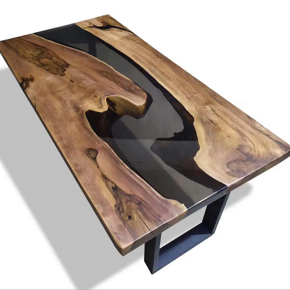 โต๊ะห้องนั่งเล่นเรซิ่นงานฝีมือสุดหรูทันสมัย รุ่น Sack RE020027 ท็อปโต๊ะอีพ็อกซี่โทนสีอบอุ่น กันน้ำ ทรงสี่เหลี่ยมผืนผ้า ขาเหล็กสแตนเลส