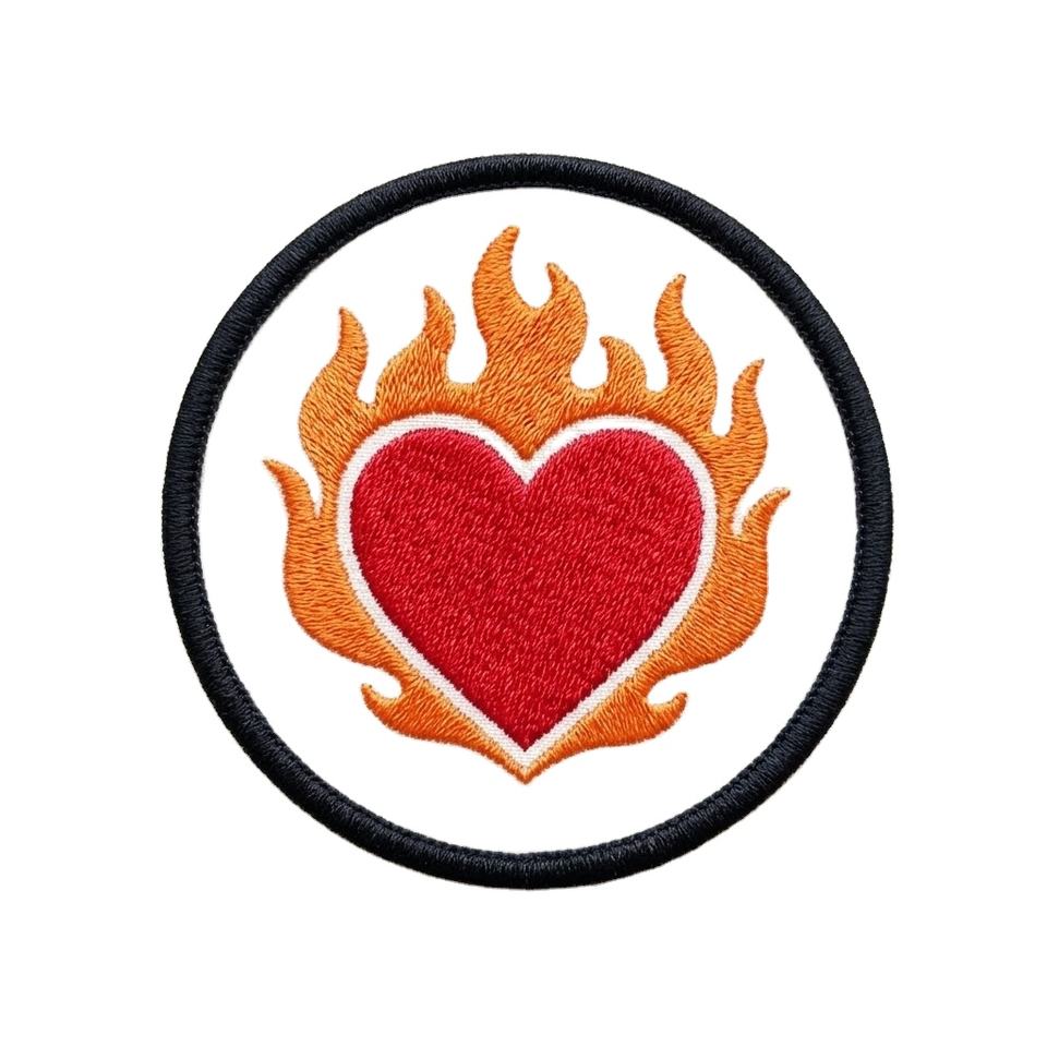 Sacred Burning Flaming Heart Iron On Machine Embroidery Patch Red Fire Love Round Badge Biker Apparel Decor Bulk Wholesale